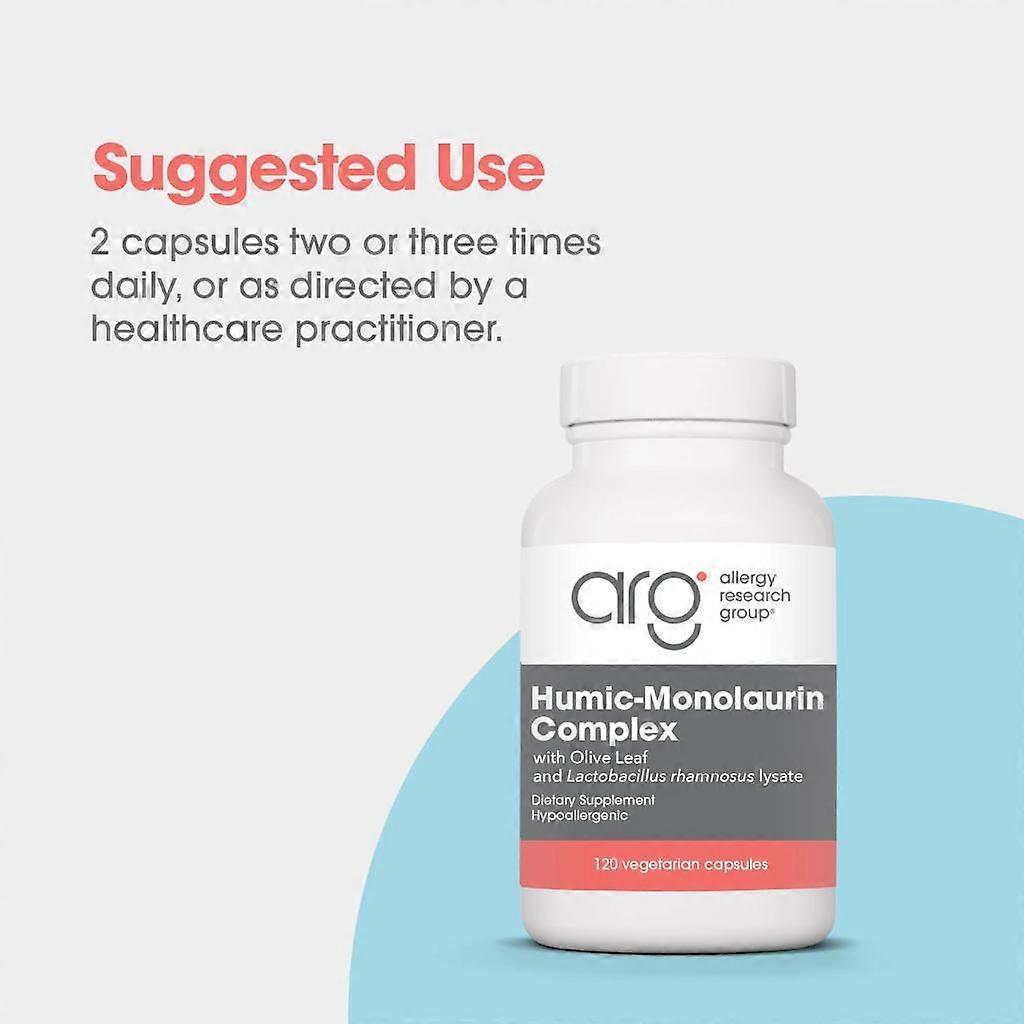 Cápsulas de complejo de húmico-monolaurina del Grupo de Investigación de Alergias para la salud inmunológica y la desintoxicación con monolaurina, extracto de hoja de olivo, ácido húmico y probióticos.
