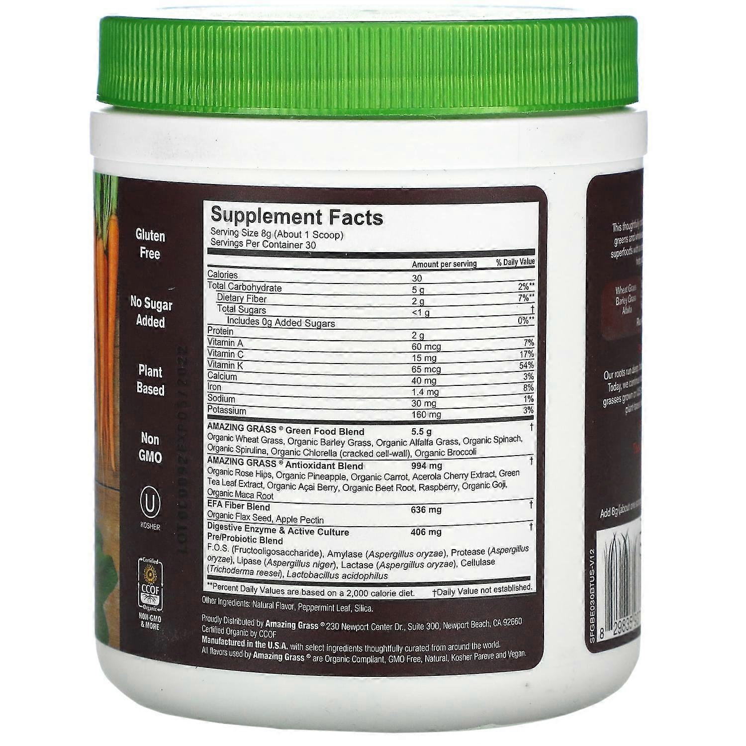 2 Full Servings of Fruits & Veggies One Scoop. Stir. Smile. Whole Food Dietary Supplement Gluten FreeNo Added SugarPlant BasedNon GMO Kosher Certified Organic by CCOFNatural EnergyPromotes DetoxHelps AlkalizeSupports Digestive HealthSupports Immunity Your daily greens plus nutritious fruits & veggies for health & wellness. Green SuperfoodÃÂÃÂÃÂÃÂÃÂÃÂÃÂÃÂÃÂÃÂÃÂÃÂÃÂÃÂÃÂÃÂÃÂÃÂÃÂÃÂÃÂÃÂÃÂÃÂÃÂÃÂÃÂÃÂÃÂÃÂÃÂìÃÂÃÂÃÂÃÂÃÂÃÂÃÂÃÂÃÂÃÂÃÂÃÂÃÂÃÂÃÂÃÂÃÂÃÂÃÂÃÂÃÂÃÂÃÂÃÂÃÂÃÂÃÂÃÂÃÂÃÂÃÂàBerry Flavor This thoughtfully crafted blend combines alkalizing farm fresh greens and wholesome fruits and veggies plus nutrient-rich superfoods with a refreshing berry flavor for a delicious way to help you feel amazing everyday. Wheat grassBarley grassAlfalfaSpirulinaChlorellaBroccoliSpinachBeet Root CarrotPineappleAcai BerryMaca Root Plus: Acerola Cherry & More... -Farm Family Roots - Our roots run deep, back to a 3rd generation family farm in Kansas. Today, we continue to use organically grown, nutrient rich cereal grasses grown on U.S. family farms and craft them with high quality, plant-based ingredients from around the world. Honestly Grown.Thoughtfully Harvested. Simply Enjoyed.