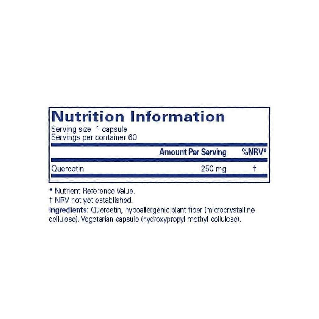 Pure Encapsulations Quercetin Is:• features pure quercetin derived from a natural plant source • quercetin is one of the most bioactive and best studied bioflavonoids • each vegetarian capsule provides 250 mg of quercetin Vegetarian Vegan