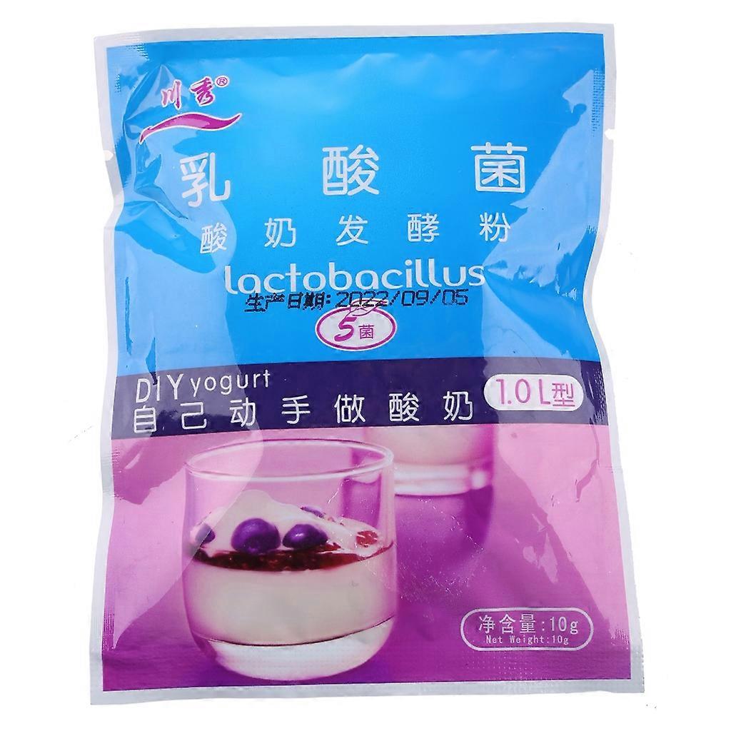 All Natural,No Artificial colors or Flavors,High Activity, Sugar-Free. Contains 5 kinds of probiotics, help promote gut for health and make your digestive tract run more smoothly. Each large packet cotains 10 small pack,1 small pack(1g) can ferment 1L milk. Product Name :Lactobacillus Yogurt Starter (5 Probiotics) Probiotics Ingredients:Maltodextrin,Lactobacillus bulgaricus,Streptococcus thermophilus, Lactobacillus acidophilus,Lactobacillus plantarum,Lactobacillus casel. Origin: Denmark Storage Life and Method:12 months at room temperature in a dry and cool condition;18 months if sealed and for frozen. Production Date: See the seal Net Content: 10g(1g*10pack) PLS READ THE FOLLOWING NOTES CAREFULLY !!! Notes: 1.Strongly Recommend keeping it refrigerated and sealed. 2.Put it in the FREEZER for more than 3 hours as soon as you receive it.It will help to improve the viability of probiotics and make fermentation more easy after freezing.Then you can use it any for time. 3.DO NOT use the detergent to clean the inner container of yogurt machine,try to use the boiling water. 4.Make sure the Yogurt Starter Powder is Stirred Evenly and does not stick to the bottom or side of the container. 5.Try to choose The Whole Milk at room temperature.DO NOT use the cold milk . 6.Set the fermentation temperature around 109(43),the fermentation for time is usually 6-8 hours,you can prolong to 10-12hours in winter. 7.You can prolong the fermentation for time to increase acid,but no more than 15 hours. 8.Refrigerate the fermented yogurt for 3-5 hours tastes better. 9.DO NOT put sugar into it before you ferment if you are not very skilled,you can add some raisins ,strawberries,honey, in the fermented yogurt on your own tastes. Attention: The product packaging may be a little different due to different production batch. Don'for t worry, this won'for t affect the product itself. Package included: one large packet (1g*10 small pack)