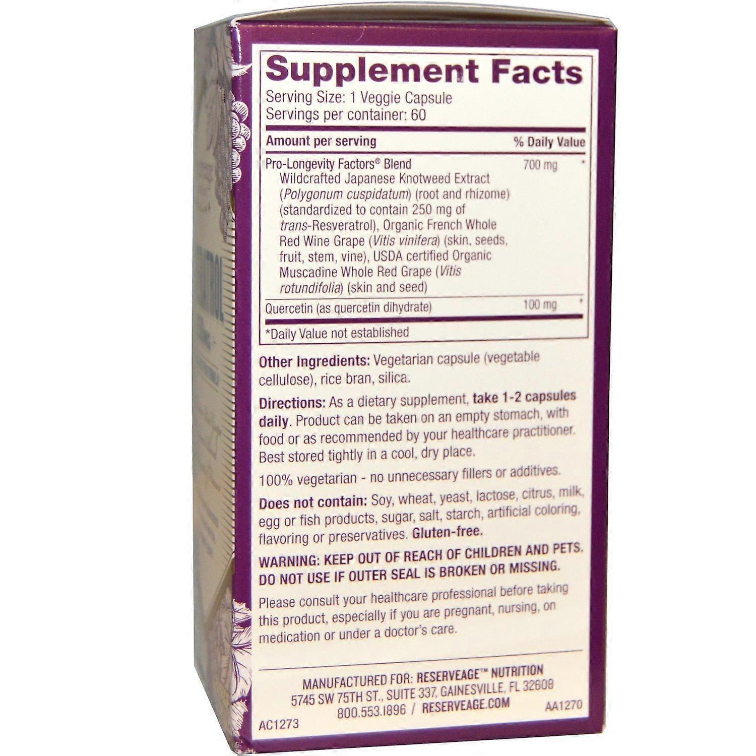 Nutrizione ReserveAge, Resveratrolo, 250 mg, 60 Capsule Vegetariane