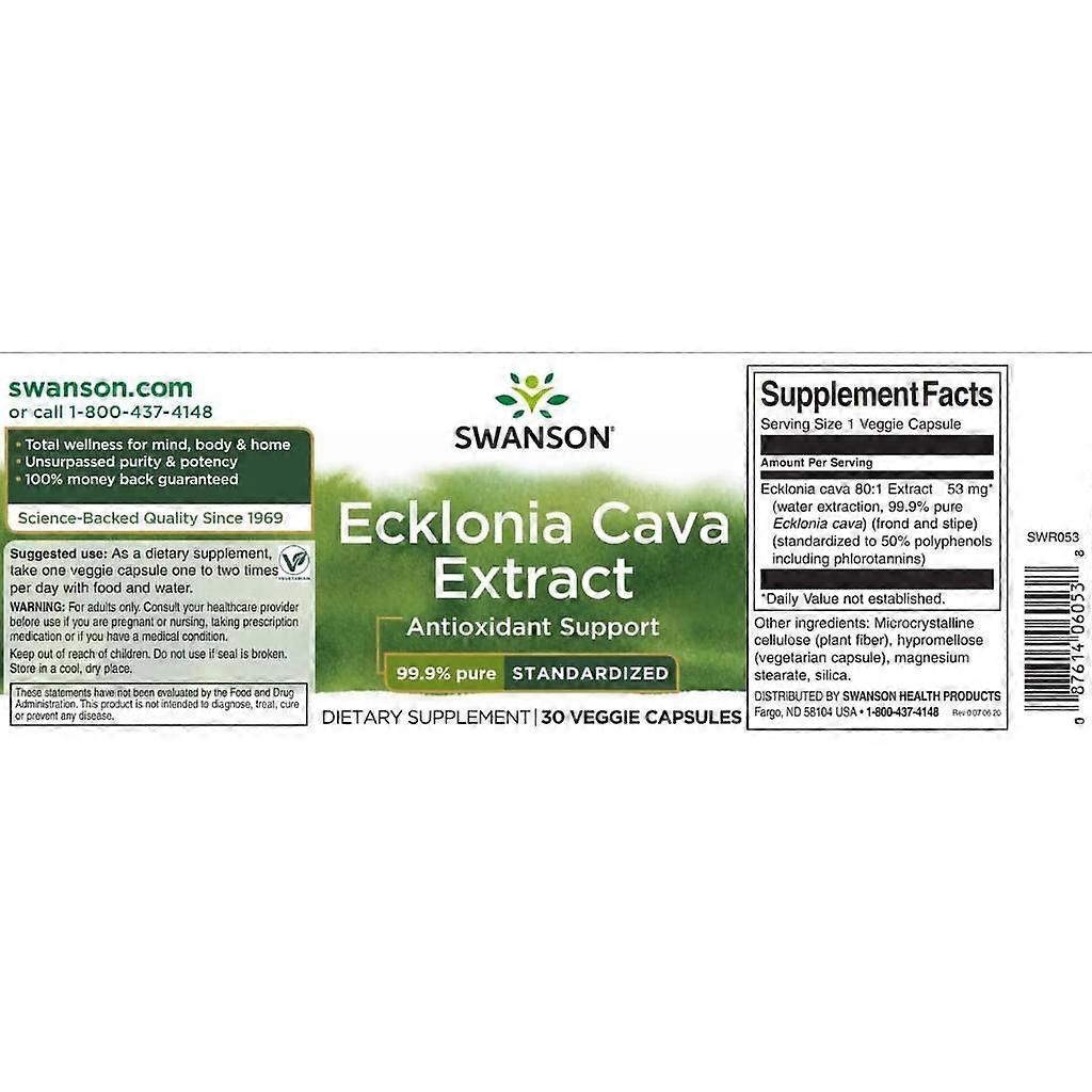 Swanson Ecklonia Cava Extract Capsules 30Sterke antioxidantondersteuning van polyfenolen op basis van algenKan een superieure antioxidantsterkte bieden in vergelijking met bronnen op het land99,9% puur extract op waterbasis voor optimale kwaliteitGeschikt voor veganisten en vegetariërs